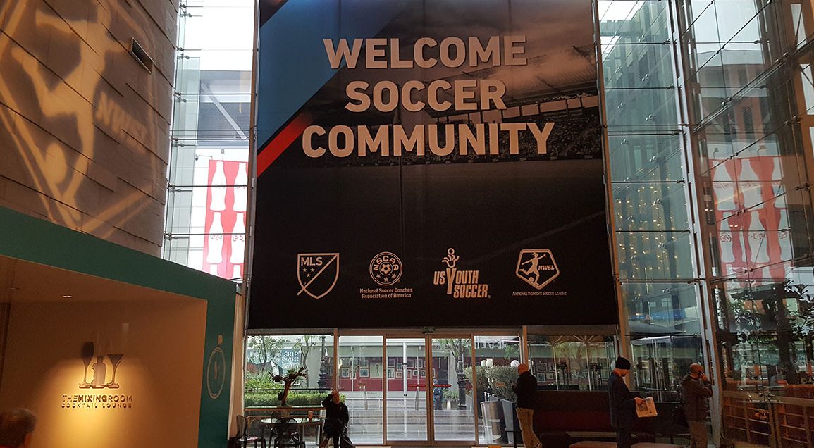 Peter Schreiner with Wayne Harrison (Soccerawareness) after his excellent day at the NSCAA Convention.