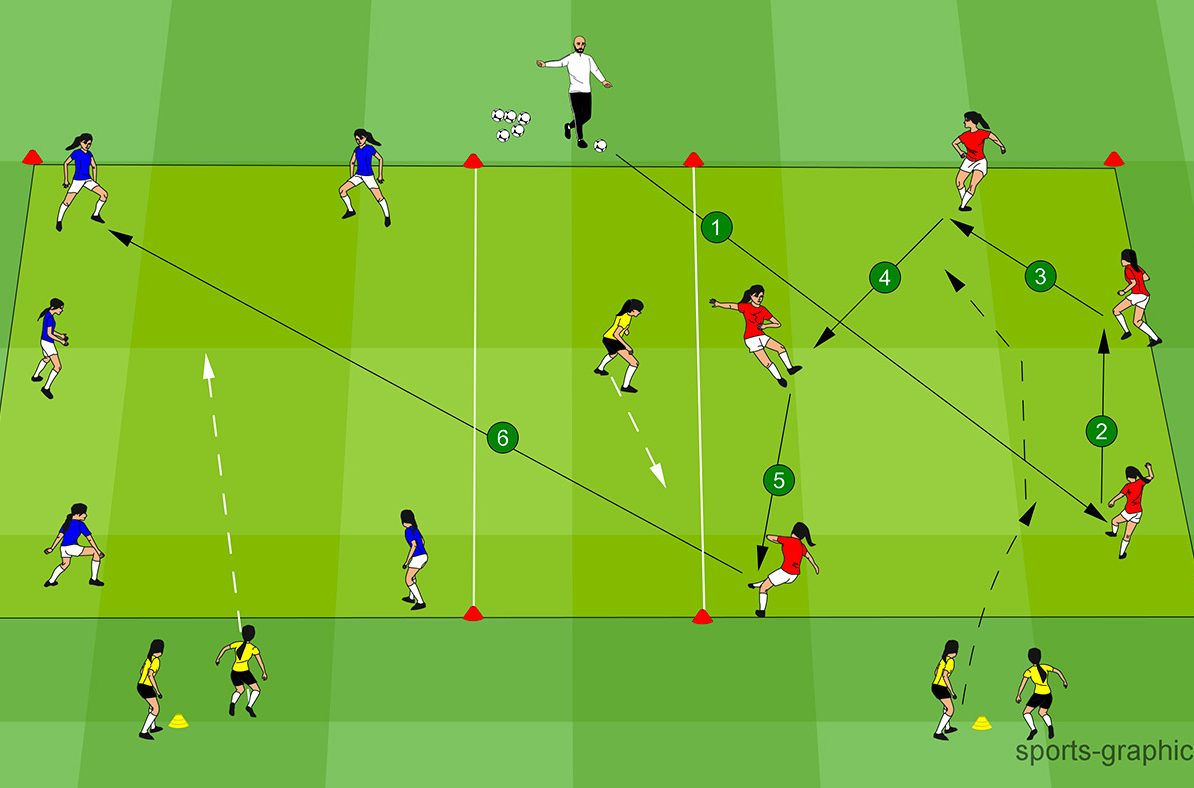3. The outside teams keep possession, aiming for 4–5 passes with two touches.