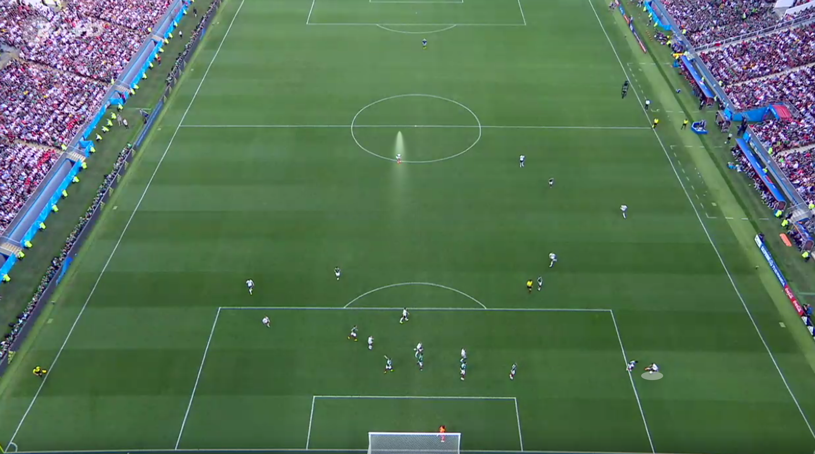 While Germany came out of the locker with much more energy and commitment, they were less able to abandon their tactical problems. Partially crazy security against counterattack (see next scene) alternated with intense, but rather haphazard, attacks (long shot Kroos, numerous penalty area scenes).