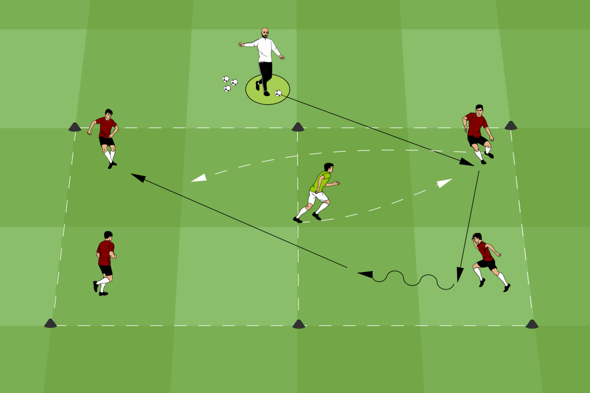 This activity gives a high number of repetitions in pressing and specially the intensity of pressing under fatigue. Really impacting the player on the ball plays a crucial role.